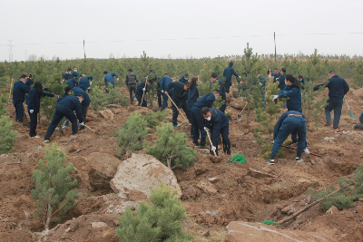 为积极推进和践行习近平总书记关于“绿水青山就是金山银山”的发展理念和“气候雄心峰会宣言”重要讲话精神。风电内蒙问鼎电子娱乐下载安装党工团,于4月26日,到丰镇市联合开展“庆祝建党100周年 践行绿色发展理念”主题植树活动。